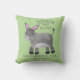 Oreiller décoratif pour enfant vert avec un âne gris fantaisiste. Inclut le nom et la date de naissance de l'enfant.