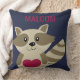 L'animal mignon de région boisée de raton laveur d'enfants a personnalisé le coussin carré bleu-foncé. Conception des deux côtés. Raton laveur brun et bronzage adorable de créature de région boisée avec le ventre rouge foncé de coeur. Personnalisez avec le nom dans rouge foncé. L'arrière - plan est bleu marine profond. Conception animale de faune d'amusement pour des enfants.