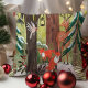 Animaux mignons de la forêt dans une forêt de Noël verte, avec un cerf, un renne, deux petits renards, des oiseaux, un hibou et un blaireau. Les plantes ont des baies sur leurs feuilles et il y a des champignons qui poussent, le sol est enneigé et le soleil brille à travers les branches, les arbres de la forêt. Œuvre originale de Caroline Bonne Müller