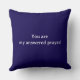 This keepsake pillow celebrates the joy of companionship and faith. The front features a centered pet photo framed by their nickname above and name below, with a trail of light blue pawprints rising toward the image. The phrase “God’s pawprints in my life” completes the tribute. On the reverse side, a deep navy background carries the touching words “You are my answered prayer,” offering comfort and a reminder of the blessing pets bring. A meaningful accent for home and heart.
