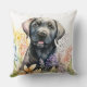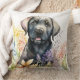Coussin Aquarelle Black Labrador Retriever et Fleurs