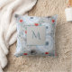 Coussin florale couleur argent bleu avec d'élégants accents de script avec de belles fleurs branchées et un style vintage, parfait pour les vacances, printemps, automne, automne, ou décor maison d'hiver.