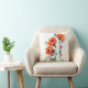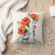 Coussin Aquarelle de trois coquelicots à long tige rouge