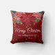 Coussin Aquarelle florale de Noël couronne poinsettia roug