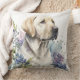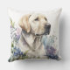 Coussin Aquarelle Golden Labrador Retriever et Fleurs