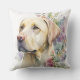 Coussin Aquarelle Golden Labrador Retriever et Fleurs