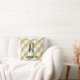 Monogramme première fleur d'aquarelle en vichy gris jaune motif oreiller