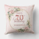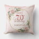 Célébrez 70 ans avec style avec cet oreiller rose doré scintillant. Avec des fleurs aquarelles rose poussiéreux, rose tendre et rose clair, une verdure luxuriante, des accents d'eucalyptus et un cadre doré, ce design boho, floral et bohème est un cadeau idéal pour un oreiller de 70e anniversaire.