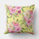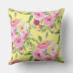 Des roses d'aquarelle luxuriants dans les tons rose, rouge, pêche et crème fleurissent sur un arrière - plan jaune citron sur cet oreiller féminin.