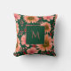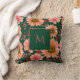 Coussin florale vert rouge aquarelle avec détails de script élégants avec de belles fleurs branchées et une touche vintage, parfait pour les vacances, printemps, automne, ou décoration maison d'hiver.