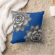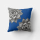 Cet oreiller lance deux succulents gris placés sur un arrière - plan bleu saphir.