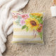 Chic tournesol aquarelle, pivoines, roses et verdure avec rayures jaune pâle jettent l'oreiller. Une touche d'élégance pour votre décor maison.