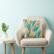 Coussin Aquarelle Turquoise Et Rouille Abstraite