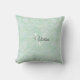 Coussin Aquarelle verte de la menthe douce Nom du monogram