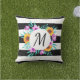 Coussin Aquarelles cool Floral Noir rayé Monogramme