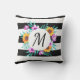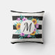 Lance un oreiller extérieur moderne avec une couronne d'aquarelle fleurie sur arrière - plan rayé noir & blanc. Customisez le monogramme en choisissant parmi de nombreuses polices merveilleuses.