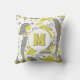 Ara Parrot Jaune Gris Tropical Motif Monogramme Jeter Oreiller. Zara dessinée à la main et feuilles tropicaux et fleurs aux couleurs jaunes et grises tendance. Ajoutez votre monogramme.