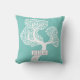 Coussin Arbre de cercle abstrait blanc et nom sur turquois