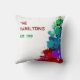 Arbre de Noël, Peinture, Couleurs primaires lancent l'oreiller - Peinture dans de nombreuses couleurs primaires se réunissent pour un bel arbre de Noël. Le côté opposé est une version plus grande de l'arbre sur le côté droit et sur la gauche est la place pour votre nom de famille ou un accueil de votre choix.
