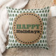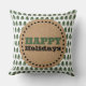 Cet oreiller moderne et simple dispose de pins verts sur un arrière - plan blanc avec texte Happy Holidays dans un cercle de pois en papier kraft. Cliquez sur le bouton Personnaliser pour customiser le texte de cette conception. Ces objets se coordonnent avec nos autres objets de la collection.