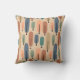 Cet oreiller de lancer a un design moderne du milieu du siècle de longs ovales en pêche, vert, bleu, turquoise, et brun clair avec des lignes noires avec des cercles sur les extrémités.