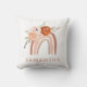 Cette coussin branchée et élégante dispose d'un arc-en-ciel boho, composé de différents tons neutres et d'un bouquet de fleurs orange et pêche. Ajoutez votre nom pour personnaliser.