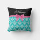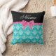 Le motif floral de fantaisie et élégant de turquoise/sarcelle d'hiver/aqua et de damassé blanche et le ruban rose d'arc de parties scintillantes (parties scintillantes non vraies) personnalisés avec juste ajoutent vos cadeaux nommés ou cadeaux de monogramme ou vos initiales idéaux pour des mariages de jeunes mariés, wedding showers, douches de fiançailles, partie de fiançailles, anniversaire, sauvent la date, la partie de bachelorette, les anniversaires et beaucoup plus de comporter un lettrage de fantaisie élégant et traditionnel.