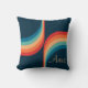 Retro double arche pattern geometrical illustration with turquoise, blue, red and beige stripes decoration on dark blue background. Add your name/monogram or delete the text