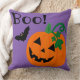 Cet oreiller violet lance un drôle de petit jack-o-lanterne orange, une chauve-souris noire et le texte "Boo !" Sur le devant, c'est juste le truc pour apporter une touche d'Halloween dans votre maison ! Ce serait tellement amusant d'avoir ce coussin sur un banc près de la porte d'entrée à côté de votre porte Mat assorti! Vient en taille carré seulement.