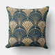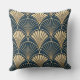 An Elegant Art Deco Golden Fan Style On A Navy Background Large Throw Pillow