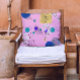Coussin Astuce jaune Turquoise bleu moderne Fleurs sur ros