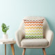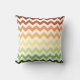 Cet oreiller moderne est doté d'un motif chevron tendance dans une palette de couleurs automnales aux tons vert, jaune et orange.