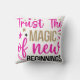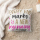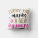 Coussin blanc avec légende Chaque extrémité marque un nouveau début en noir, or et rose.