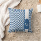 Coussin Azure Elegant Chevron Design avec monogramme