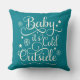 La conception saisonnière de coussin comprend le script "Baby it's Cold Outside" avec des accents d'étoile et de flocon de neige. Couleur turquoise bleu / vert arrière - plan peut être customisé pour coordonner avec votre décor de vacances.