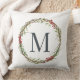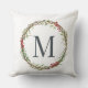 Coussin Baies vertes d'hiver rustiques Monogramme Wreath