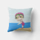Ce coussin décoratif en tissu extérieur a une mignonne petite nageuse dans un maillot de bain à pois rose et de grands yeux de googly sur le point de plonger dans un lac bleu sur le devant et le dos.