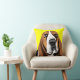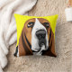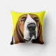 Triste yeux Basset Hound avec de grandes oreilles, jaune arrière - plan sur coussin peut être customisé