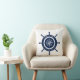 Bateau de badge nautique roue et étoile nautique. Beau coussin bleu et blanc pour chaque salon nautique, chambre, entrée - pour chaque maison nautique. Pour tous les marins et tous ceux qui aiment le nautique, Hamptons, Nantucket et New England Style.