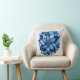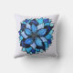coussin Abstrait de fleurs bleues avec une illustration manuscrite d'une fleur bleue avec de nombreux pétales dans différentes nuances de bleu rappelant une oeuvre de mandala.