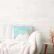 Coussin avec un design estival dynamique. Image turquoise / aquarelle vert aqua avec une bordure ondulée en faux or. Élégant et adorable.