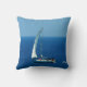 Image nautique d'un magnifique voilier sur une eau bleu vif sur un coussin. Photographie numérique par Sue Melvin