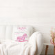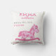 Un adorable dessin de cheval rose rocking. Ce mignon coussin accueille une petite fille. Un coussin de garde personnalisé comprend le nom du bébé, la date de naissance, l'heure de naissance, le poids à la naissance et la longueur. L'envers du coussin est rose.