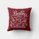 Un oreiller de Noël saisonnier présente un script élégant "Baby it's Cold Outside" design typographique avec des accents d'étoile et de flocon de neige en blanc sur un plaid de buffle rouge et noir rustique / chèque arrière - plan à motifs.