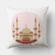 Celebrate the spirit of Ramadan with this refined pillow design featuring a stylized mosque in warm beige and reddish-brown tones, crowned with a crescent moon. Set against a soft pink circular backdrop, the clean lines and modern aesthetic evoke both reverence and serenity—perfect for prayer spaces, festive décor, or heartfelt Ramadan gifts.
