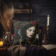 Coussin Belle femme gothique avec des épines et des roses