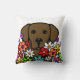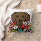 Beau coussin d'illustration de Labrador de chocolat pour les amoureux de les chiens qui aiment des chiens de labrador retriever. Les fleurs colorées et belles fleurissent autour du chien. Vous pouvez ajouter le texte comme vous voudrez. Créé par Naomi Ochiai du Japon.