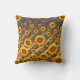 Coussin Belles fleurs jaunes sur gris, rayures marron