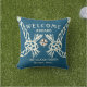 Bienvenue à bord d'un oreiller extérieur, une corde couleur beige bordée d'un arrière - plan bleu océan au texte beige. Vous pouvez utiliser la fonction "personnaliser ce modèle" pour désigner le texte correspondant à votre bateau.