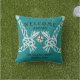 Coussin Bienvenue à bord du bateau Nom Turquoise et blanc